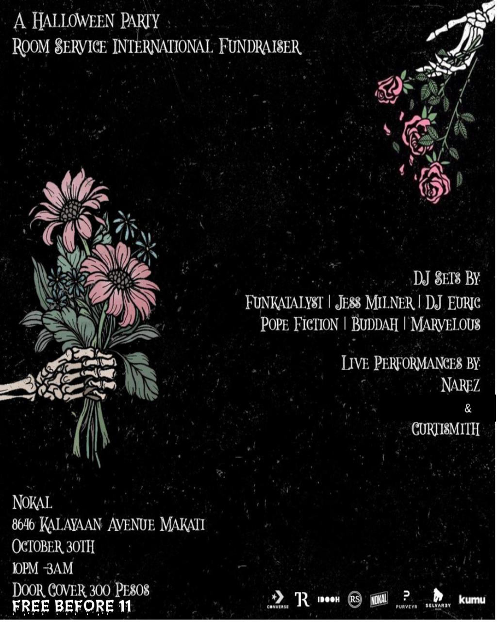 FREE BEFORE 11pm, 300 Pesos after 11pm (Includes Drink ticket) to support Room Service International Foundation