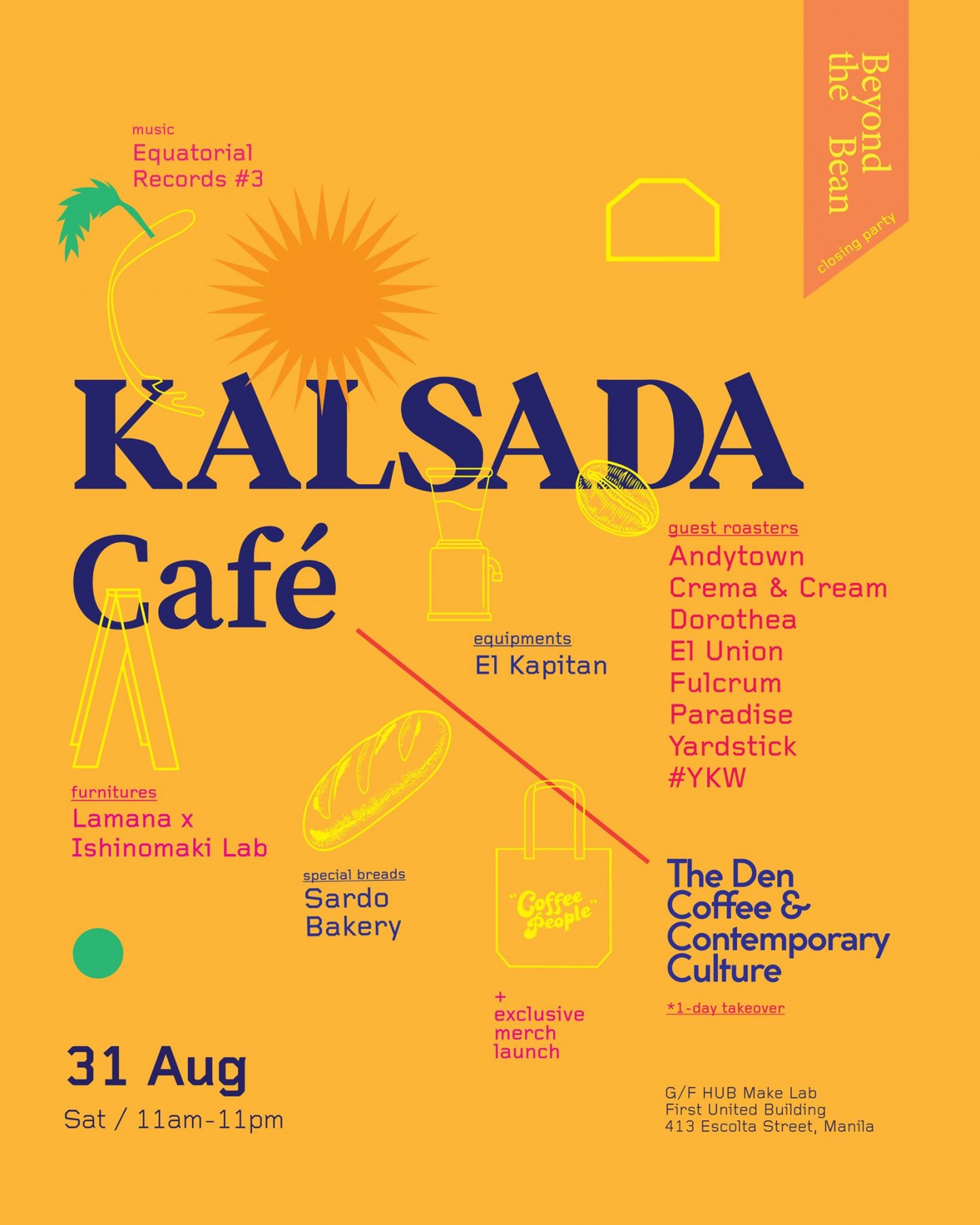 Aug 31 marks the end of our exhibition “Beyond the Bean” with Kalsada Coffee! On this day, Kalsada will take over our space as their “Kalsada Cafe” with the help of friends, we will unite and feature the dream café from artisanal furnitures to special breads to special edition roasts of Philippine specialty coffee from Kalsada!