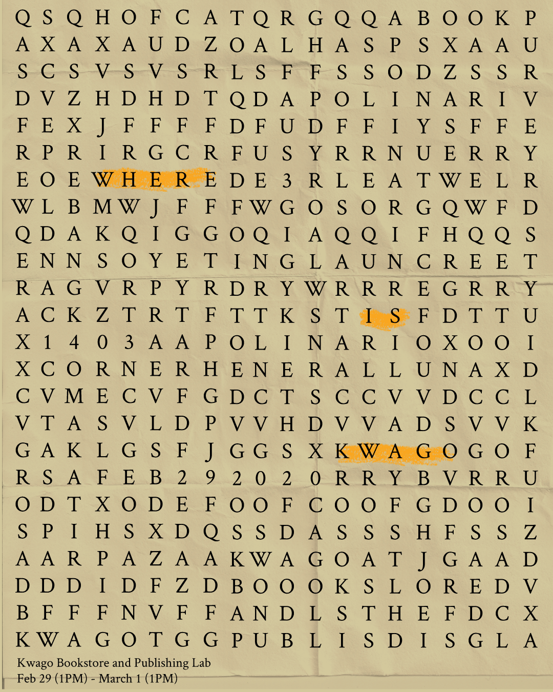 Follow their event page for updates: bit.ly/whereiskwago