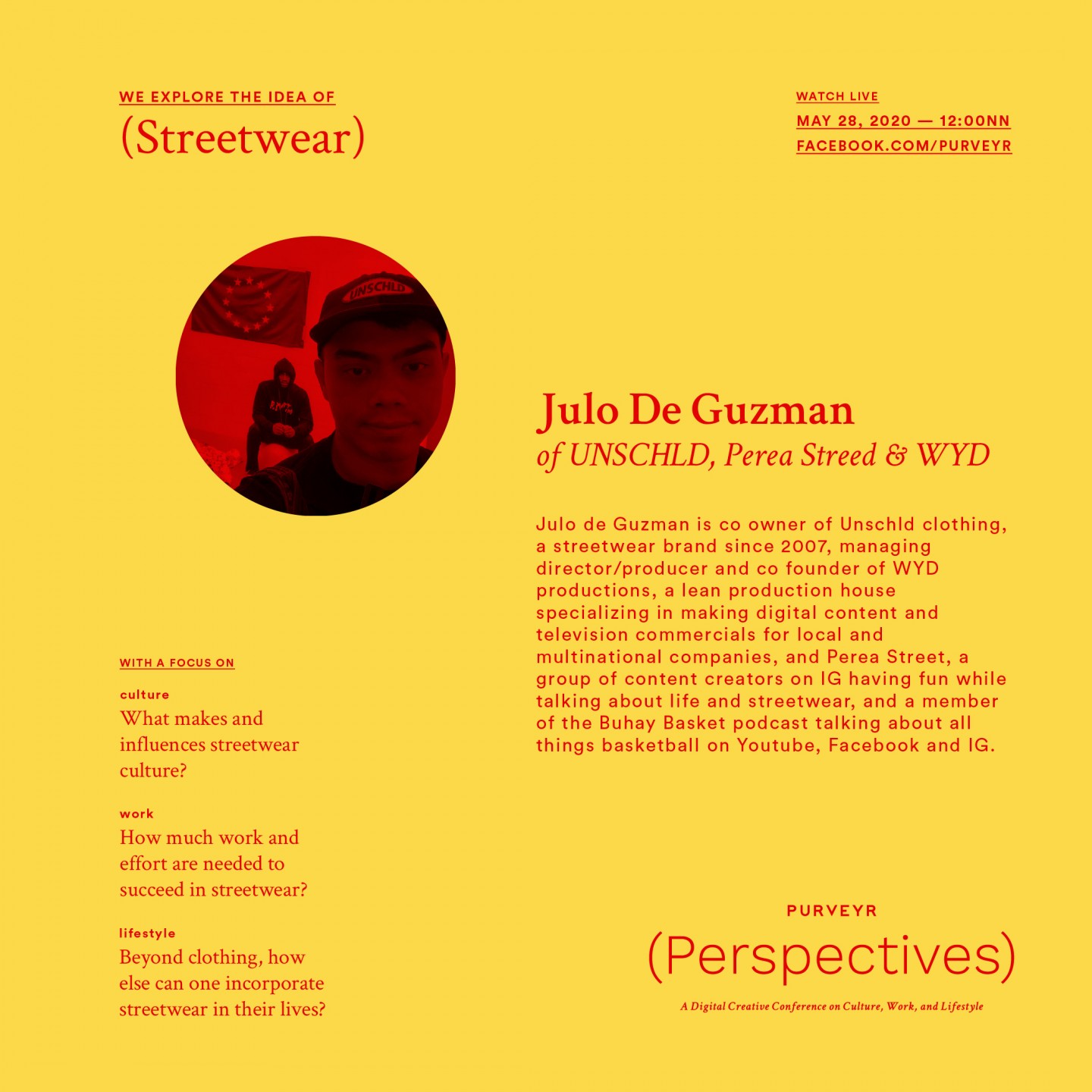 People have different definitions of streetwear. Some say it’s a subculture of skate and surf, others describe it as an intersection of fashion and music particularly hip-hop, or it was born out of the love for basketball, where you see different kinds of sneakers in and outside of the court. For some, it’s simply aesthetic, but for Julo De Guzman, “the concept of streetwear for me is simply what resonates to you, what you see in your everyday life. Whatever experience, whatever thing, and then you have a piece of platform or clothing to express that moment that resonated with you.”