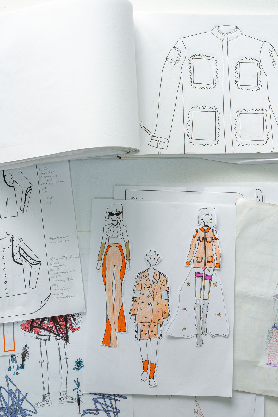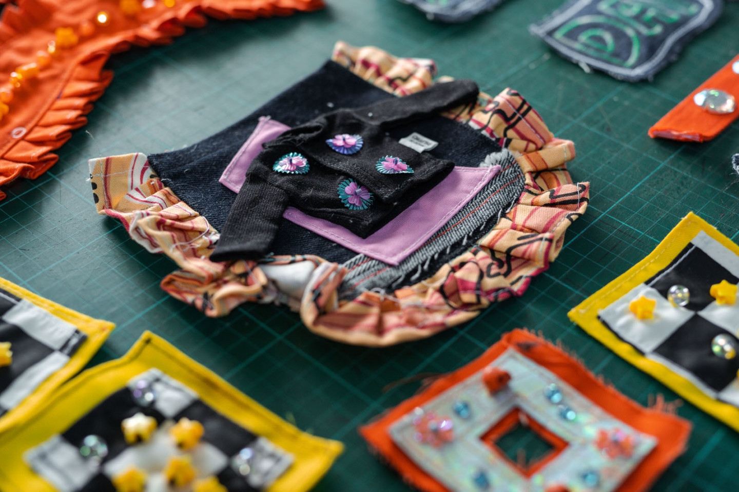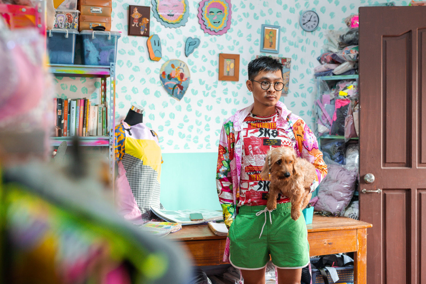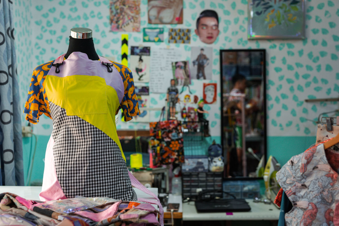 As compared to other designers who usually start their ideation process by building mood boards or starting off with a rough concept, Willar takes pride in letting his hands do the figuring out for him, whether it be spontaneously sewing pieces of fabric, or doodling odd characters, “Work [with] what you have din.” (Work [with] what you have.)