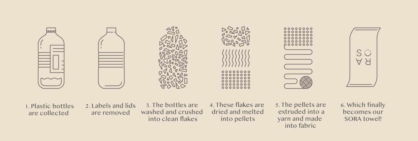 The towels are consciously made from recycled plastic bottles. How do you make the towels from plastic bottles? What is their role and approach to practice?