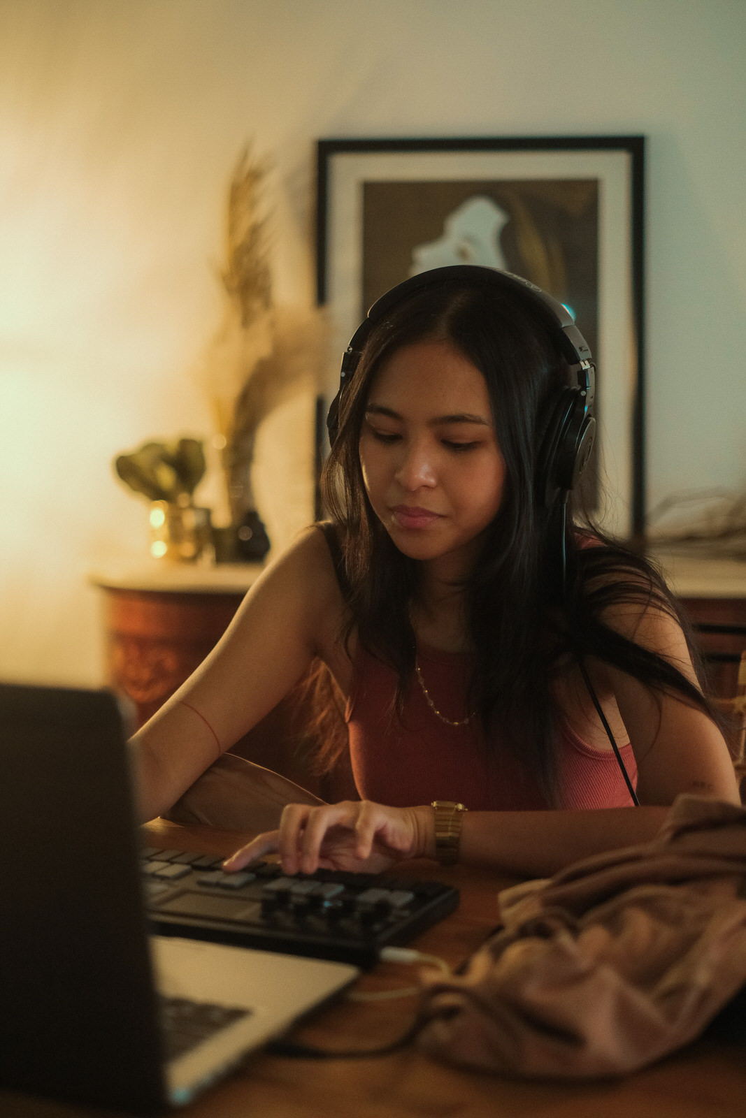 “I had all the equipment, like I had the interface and all the stuff that you need for a home studio, but lagi siyang nakatabi lang sa room ko (they were tucked away in the corners of my room). I never really gave it time. It’s just there in case I need it. But during the pandemic, I really put it out,” Benin says when asked about how the pandemic affected her creative process. “I feel like one of the things that kept me sane was just waking up and seeing my workstation ready.”