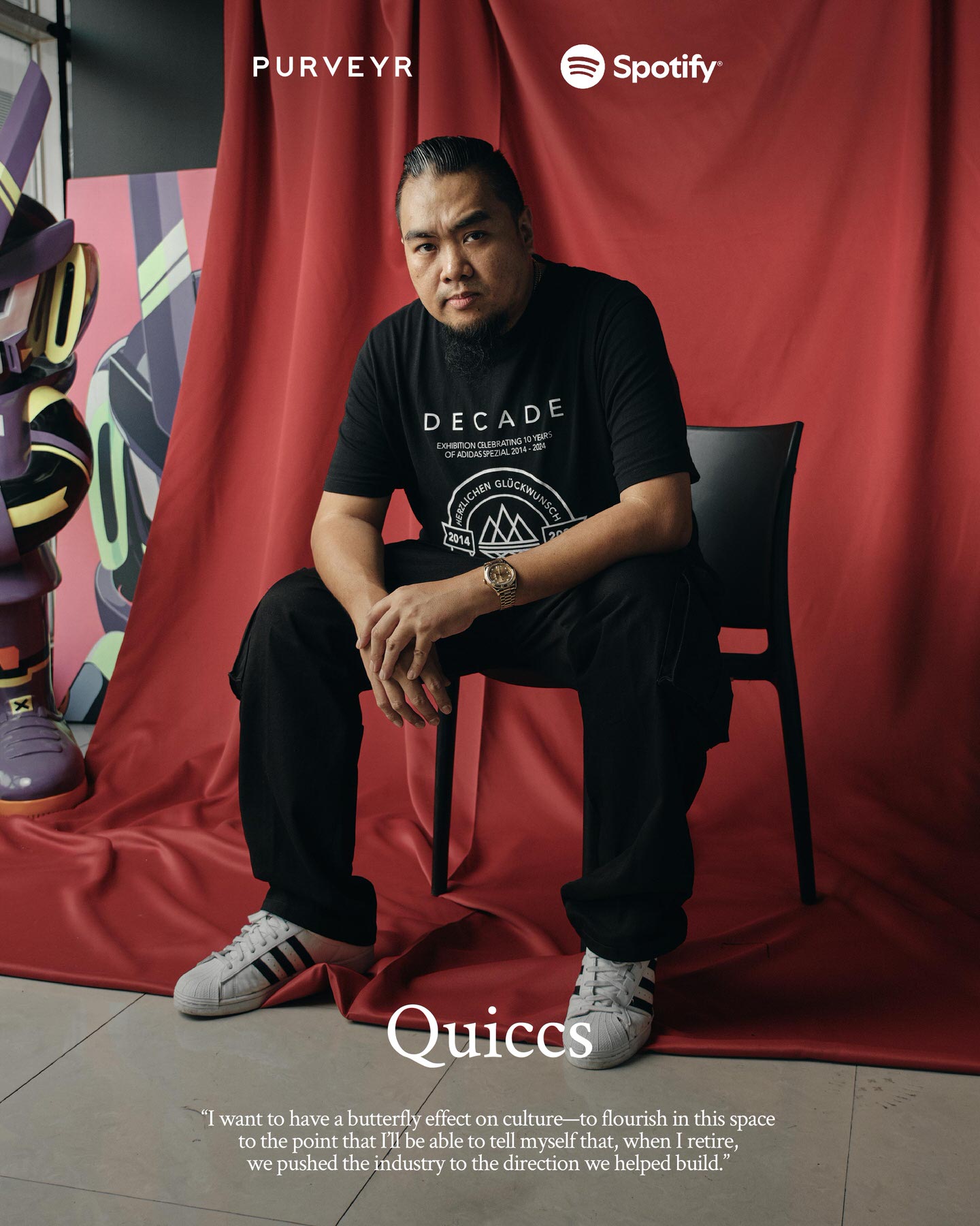 Quiccs Maiquez has been doing art all his life. After becoming a graphic designer straight from college, he ventured into toy design, building his brand around what he enjoys the most—Japanese robots, Hiphop music, and graffiti culture. For him, music has a big part in his life, interests, and in work. “Whenever I travel, I have Spotify on. When I sleep at night, I usually listen to podcasts or sleep music. For work, it sets my rhythm and pace throughout my tasks for the day,” he said.