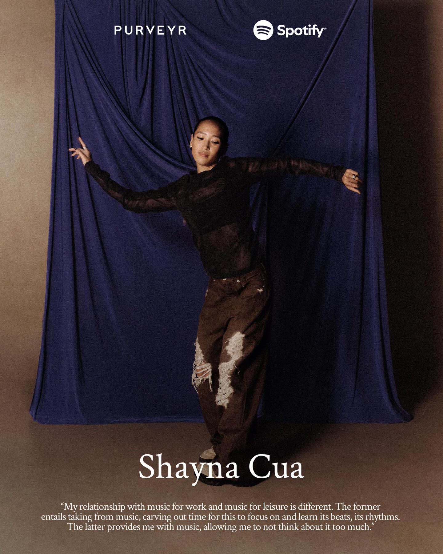 Shayna Cua is a movement artist who trained in dance for twenty years. Throughout her career, her relationship with music has been complex—as she listens to it as often as she could, it has been hard to differentiate between listening as a relaxation and for work. She shares that her relationship with music for work and music for leisure is different. “The former entails taking from music, carving out time for this to focus on and learn its beats, its rhythms. The latter provides me with music, allowing me to not think about it too much.”