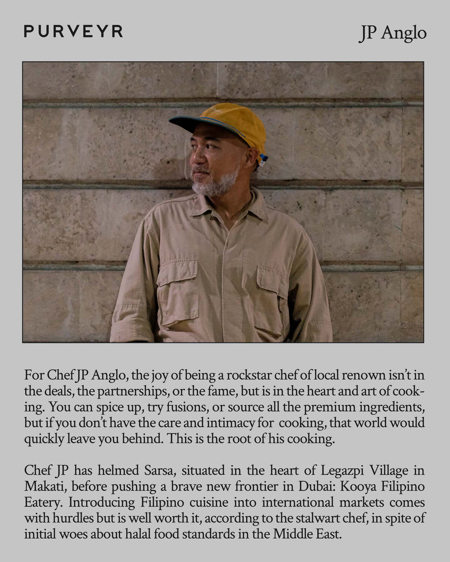 From Bacolod to Manila to Dubai, Chef JP Anglo knows all too well what Filipino food is all about. But beyond that, he also acknowledges the strong connection between cuisine and community. Originally starting with Sarsa, located in Legazpi Village, Makati, his latest foray into spreading the great word that is Filipino food broadens the scope with Kooya Filipino Eatery in Dubai. To him, food is a sensation, a universal phenomenon. He further notes that staying true to the vision and authenticity of a cuisine’s roots takes time, dedication, and sticking to your grit.