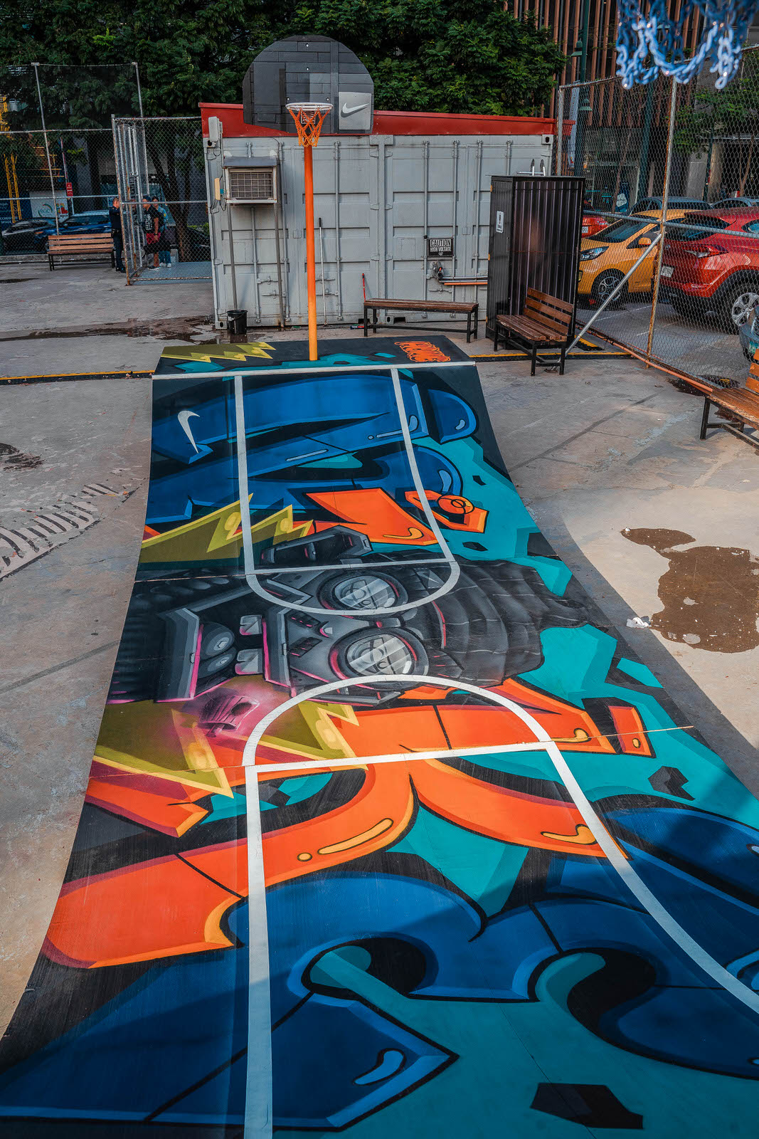 This work sees basketball co-existing with other street cultures it is highly related to— graffiti tagging and skateboarding. All these cultures are about marking your territory. Mark yours.