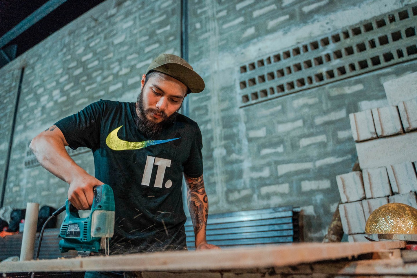 Known for his distinct taste and sharp eye for style, Kayo is the master planner of the five art installations that will be competing in this year’s Art Battle of Nike Battle Force Manila. Each of the five artists have varied aesthetics—abstract, geometrics, sculpture, wood, aerosol and graffiti—that even if they all start on the same ground, the way that they approach and play around with it will set them apart. Just like in a game of basketball where teams bring different styles of play against one another—all contributing to forty minutes of excitement brought about by the game we all love.